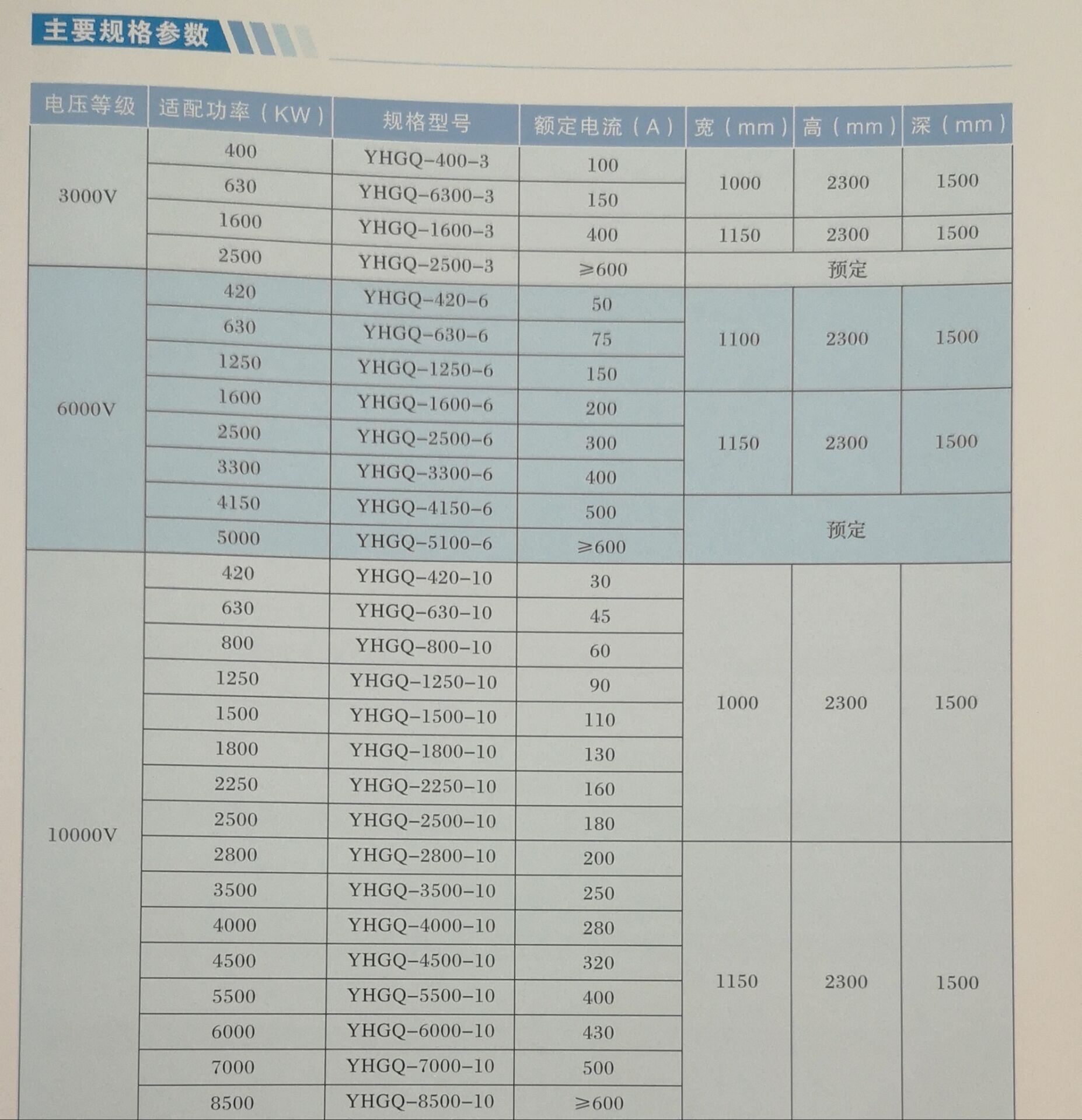 高壓固態(tài)軟啟動(dòng)柜柜體尺寸根據(jù)用戶所選擇的高壓固態(tài)軟啟動(dòng)柜柜體的規(guī)格型號(hào)而有所差異,具體規(guī)格型號(hào)及安裝尺寸、適配功率,電壓等級(jí)、額定電流等相關(guān)參數(shù)可參考下表。